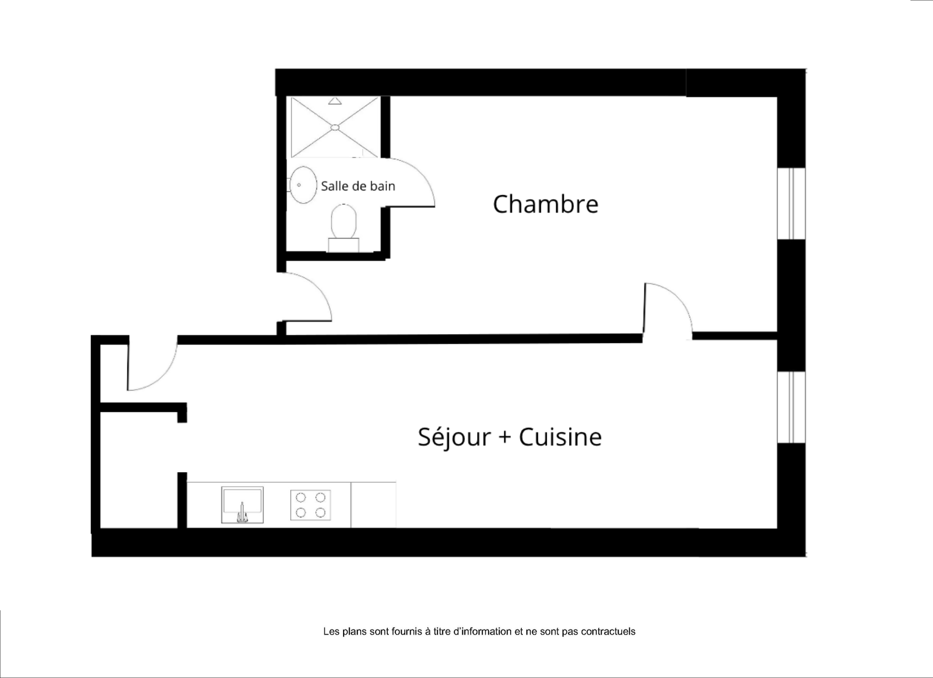 L’appartement se compose comme suit : séjour avec coin cuisine, buanderie, une chambre et une salle de bain.