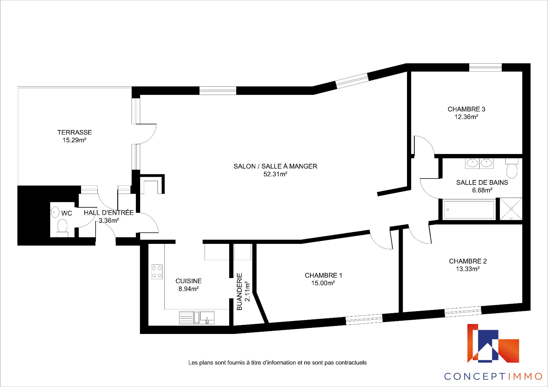Une agréable terrasse bien orientée de 15 m² permet de profiter pleinement des beaux jours.